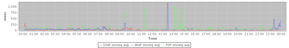 Host zm03.stanford.edu: Mailboxd: Response Time by Client Protocol