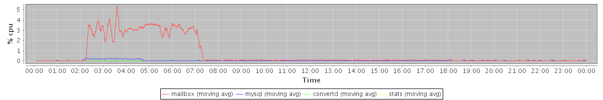 avg(mailbox) = 0.68 avg(mysql) = 0.02 avg(convertd) = 0.00 avg(stats) = 0.00