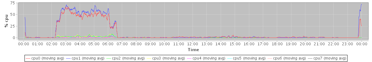 avg(cpu0) = 0.48 avg(cpu1) = 0.42 avg(cpu2) = 0.17 avg(cpu3) = 0.14 avg(cpu4) = 0.15 avg(cpu5) = 0.10 avg(cpu6) = 0.07 avg(cpu7) = 0.05