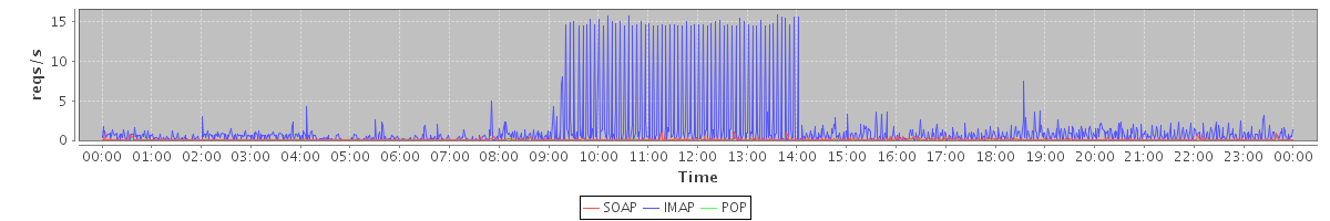 Host zm04.stanford.edu: Mailboxd: Request Rate by Client Protocol