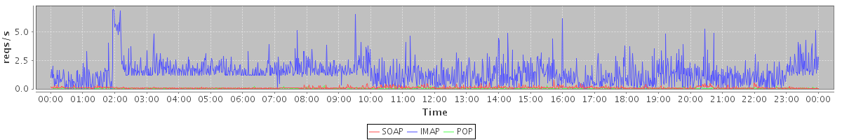 avg(IMAP) = 7.67 avg(IMAP SSL) = 11.92 avg(POP) = 0.00 avg(POP SSL) = 0.00 avg(SOAP sessions) = 4.63