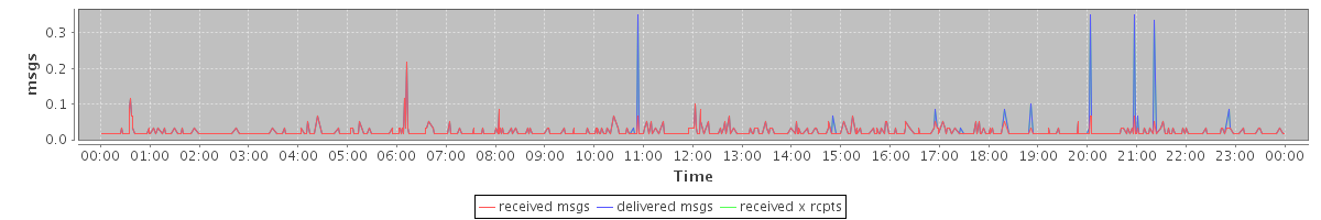 avg(received msgs) = 0.01 avg(delivered msgs) = 0.01 avg(received x rcpts) = 0.01