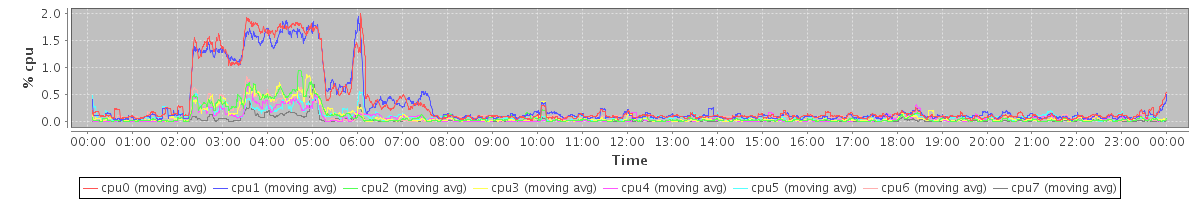 avg(cpu0) = 0.33 avg(cpu1) = 0.32 avg(cpu2) = 0.09 avg(cpu3) = 0.09 avg(cpu4) = 0.07 avg(cpu5) = 0.10 avg(cpu6) = 0.12 avg(cpu7) = 0.03