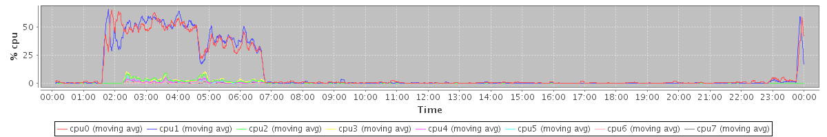 avg(cpu0) = 0.47 avg(cpu1) = 0.44 avg(cpu2) = 0.18 avg(cpu3) = 0.14 avg(cpu4) = 0.14 avg(cpu5) = 0.09 avg(cpu6) = 0.08 avg(cpu7) = 0.06