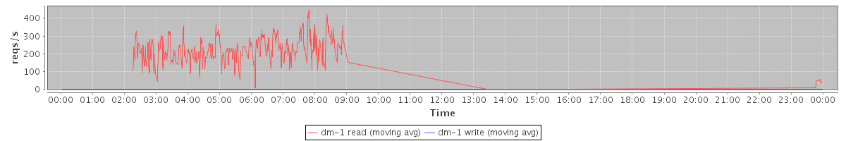 avg(dm-1 read) = 2379.40 avg(dm-1 write) = 0.08