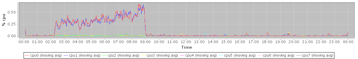 avg(cpu0) = 0.01 avg(cpu1) = 0.01 avg(cpu2) = 0.00 avg(cpu3) = 0.00 avg(cpu4) = 0.00 avg(cpu5) = 0.00 avg(cpu6) = 0.00 avg(cpu7) = 0.00
