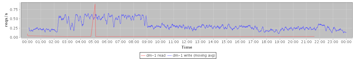 avg(dm-1 read) = 0.00 avg(dm-1 write) = 3.21
