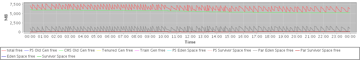 avg(total free) = 6491.52 avg(PS Old Gen free) = 0.00 avg(CMS Old Gen free) = 5590.88 avg(Tenured Gen free) = 0.00 avg(Train Gen free) = 0.00 avg(PS Eden Space free) = 0.00 avg(PS Survivor Space free) = 0.00 avg(Par Eden Space free) = 801.77 avg(Par Survivor Space free) = 98.88 avg(Eden Space free) = 0.00 avg(Survivor Space free) = 0.00
