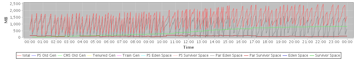avg(total) = 1335.79 avg(PS Old Gen) = 0.00 avg(CMS Old Gen) = 430.12 avg(Tenured Gen) = 0.00 avg(Train Gen) = 0.00 avg(PS Eden Space) = 0.00 avg(PS Survivor Space) = 0.00 avg(Par Eden Space) = 803.86 avg(Par Survivor Space) = 101.81 avg(Eden Space) = 0.00 avg(Survivor Space) = 0.00