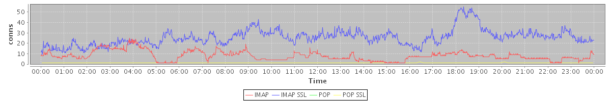 avg(IMAP) = 7.89 avg(IMAP SSL) = 25.65 avg(POP) = 0.00 avg(POP SSL) = 0.11