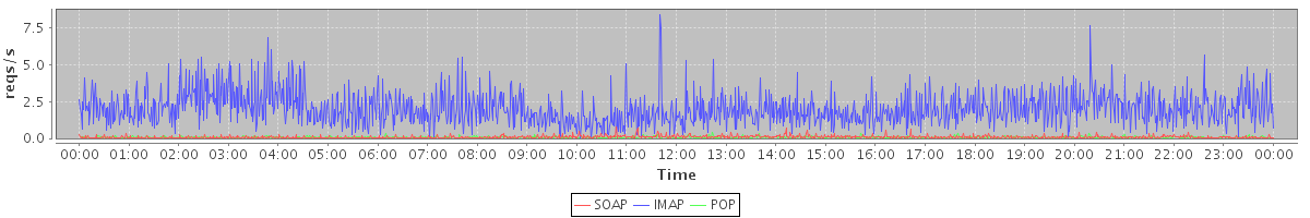 Host zm09.stanford.edu: Mailboxd: Request Rate by Client Protocol