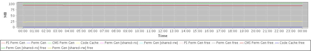 avg(PS Perm Gen) = 0.00 avg(Perm Gen) = 0.00 avg(CMS Perm Gen) = 102.39 avg(Code Cache) = 24.56 avg(Perm Gen [shared-ro]) = 0.00 avg(Perm Gen [shared-rw]) = 0.00 avg(PS Perm Gen free) = 0.00 avg(Perm Gen free) = 0.00 avg(CMS Perm Gen free) = 93.61 avg(Code Cache free) = 0.28 avg(Perm Gen [shared-ro] free) = 0.00 avg(Perm Gen [shared-rw] free) = 0.00
