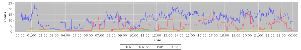 avg(IMAP) = 4.30 avg(IMAP SSL) = 10.96 avg(POP) = 0.00 avg(POP SSL) = 0.00