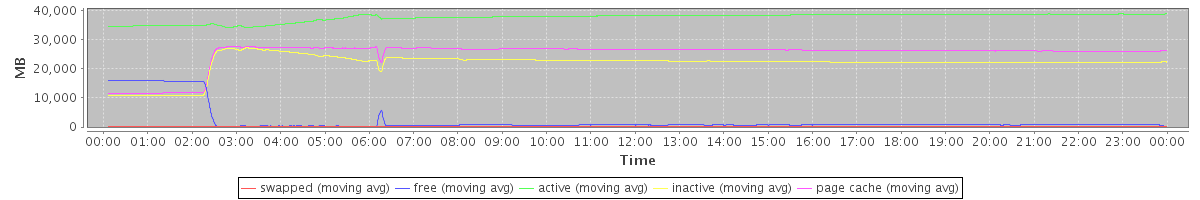 avg(swapped) = 28.20 avg(free) = 2149.23 avg(active) = 37517.46 avg(inactive) = 21768.20 avg(page cache) = 25054.27