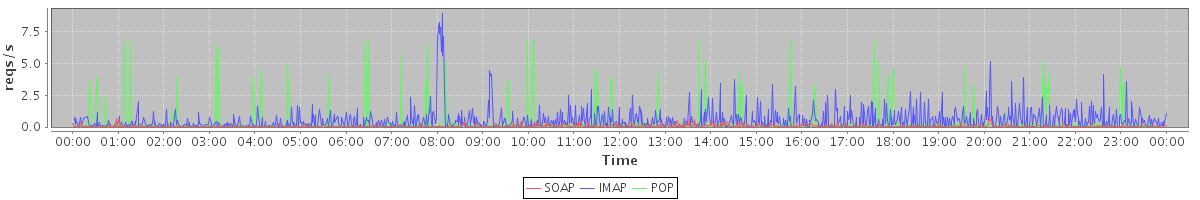 Host zm05.stanford.edu: Mailboxd: Request Rate by Client Protocol