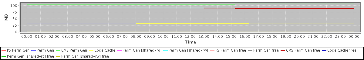 avg(PS Perm Gen) = 0.00 avg(Perm Gen) = 0.00 avg(CMS Perm Gen) = 105.70 avg(Code Cache) = 32.30 avg(Perm Gen [shared-ro]) = 0.00 avg(Perm Gen [shared-rw]) = 0.00 avg(PS Perm Gen free) = 0.00 avg(Perm Gen free) = 0.00 avg(CMS Perm Gen free) = 90.30 avg(Code Cache free) = 0.30 avg(Perm Gen [shared-ro] free) = 0.00 avg(Perm Gen [shared-rw] free) = 0.00