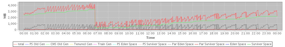 avg(total) = 2243.17 avg(PS Old Gen) = 0.00 avg(CMS Old Gen) = 1673.57 avg(Tenured Gen) = 0.00 avg(Train Gen) = 0.00 avg(PS Eden Space) = 0.00 avg(PS Survivor Space) = 0.00 avg(Par Eden Space) = 509.87 avg(Par Survivor Space) = 59.72 avg(Eden Space) = 0.00 avg(Survivor Space) = 0.00