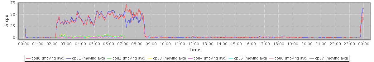 avg(cpu0) = 0.55 avg(cpu1) = 0.55 avg(cpu2) = 0.19 avg(cpu3) = 0.20 avg(cpu4) = 0.10 avg(cpu5) = 0.12 avg(cpu6) = 0.08 avg(cpu7) = 0.08