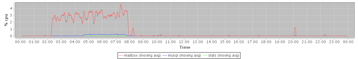 avg(mailbox) = 0.71 avg(mysql) = 0.03 avg(stats) = 0.00
