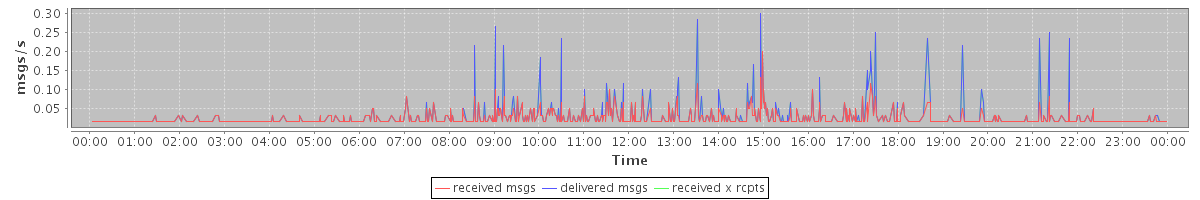avg(received msgs) = 0.01 avg(delivered msgs) = 0.02 avg(received x rcpts) = 0.02