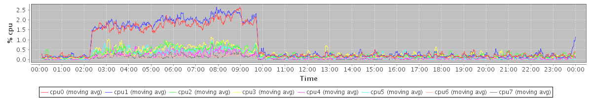 avg(cpu0) = 0.00 avg(cpu1) = 0.01 avg(cpu2) = 0.00 avg(cpu3) = 0.00 avg(cpu4) = 0.00 avg(cpu5) = 0.00 avg(cpu6) = 0.00 avg(cpu7) = 0.00