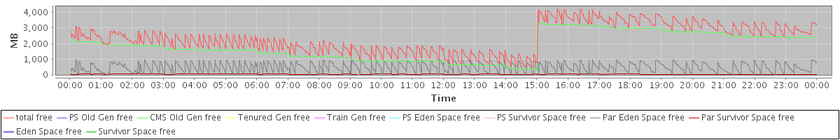 avg(total free) = 2351.64 avg(PS Old Gen free) = 0.00 avg(CMS Old Gen free) = 1825.72 avg(Tenured Gen free) = 0.00 avg(Train Gen free) = 0.00 avg(PS Eden Space free) = 0.00 avg(PS Survivor Space free) = 0.00 avg(Par Eden Space free) = 484.45 avg(Par Survivor Space free) = 41.48 avg(Eden Space free) = 0.00 avg(Survivor Space free) = 0.00