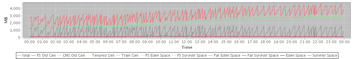 avg(total) = 3059.04 avg(PS Old Gen) = 0.00 avg(CMS Old Gen) = 2122.36 avg(Tenured Gen) = 0.00 avg(Train Gen) = 0.00 avg(PS Eden Space) = 0.00 avg(PS Survivor Space) = 0.00 avg(Par Eden Space) = 799.54 avg(Par Survivor Space) = 137.13 avg(Eden Space) = 0.00 avg(Survivor Space) = 0.00