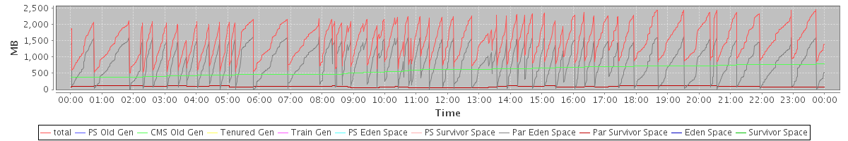 avg(total) = 1494.16 avg(PS Old Gen) = 0.00 avg(CMS Old Gen) = 584.25 avg(Tenured Gen) = 0.00 avg(Train Gen) = 0.00 avg(PS Eden Space) = 0.00 avg(PS Survivor Space) = 0.00 avg(Par Eden Space) = 817.73 avg(Par Survivor Space) = 92.17 avg(Eden Space) = 0.00 avg(Survivor Space) = 0.00
