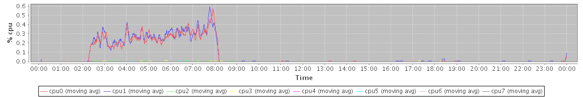 avg(cpu0) = 0.07 avg(cpu1) = 0.07 avg(cpu2) = 0.00 avg(cpu3) = 0.00 avg(cpu4) = 0.00 avg(cpu5) = 0.00 avg(cpu6) = 0.00 avg(cpu7) = 0.00