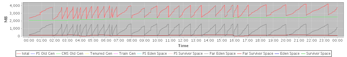 avg(total) = 3218.43 avg(PS Old Gen) = 0.00 avg(CMS Old Gen) = 2293.47 avg(Tenured Gen) = 0.00 avg(Train Gen) = 0.00 avg(PS Eden Space) = 0.00 avg(PS Survivor Space) = 0.00 avg(Par Eden Space) = 806.30 avg(Par Survivor Space) = 118.66 avg(Eden Space) = 0.00 avg(Survivor Space) = 0.00