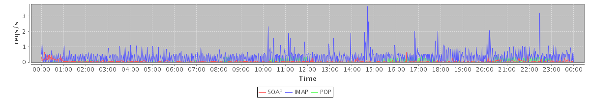 Host zm07.stanford.edu: Mailboxd: Request Rate by Client Protocol