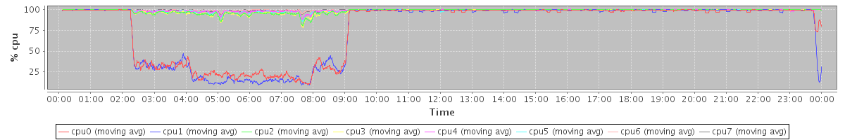 avg(cpu0) = 8.49 avg(cpu1) = 8.53 avg(cpu2) = 0.86 avg(cpu3) = 0.87 avg(cpu4) = 0.48 avg(cpu5) = 0.51 avg(cpu6) = 0.31 avg(cpu7) = 0.25