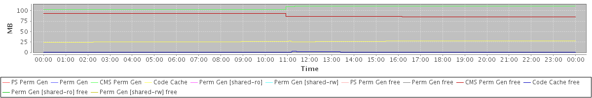 avg(PS Perm Gen) = 0.00 avg(Perm Gen) = 0.00 avg(CMS Perm Gen) = 107.04 avg(Code Cache) = 26.18 avg(Perm Gen [shared-ro]) = 0.00 avg(Perm Gen [shared-rw]) = 0.00 avg(PS Perm Gen free) = 0.00 avg(Perm Gen free) = 0.00 avg(CMS Perm Gen free) = 88.96 avg(Code Cache free) = 0.46 avg(Perm Gen [shared-ro] free) = 0.00 avg(Perm Gen [shared-rw] free) = 0.00
