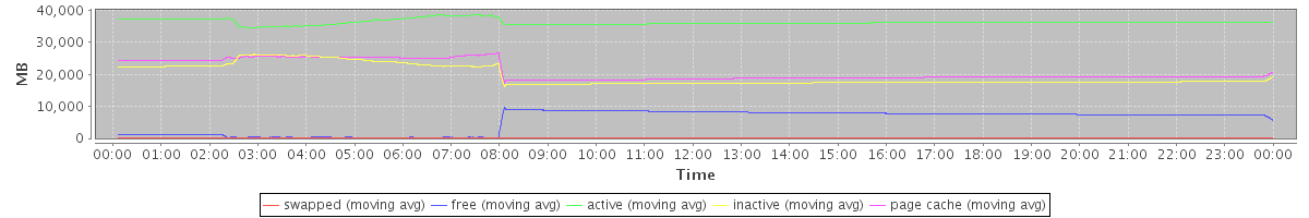 avg(swapped) = 24.23 avg(free) = 5487.03 avg(active) = 36345.43 avg(inactive) = 19560.43 avg(page cache) = 21018.06