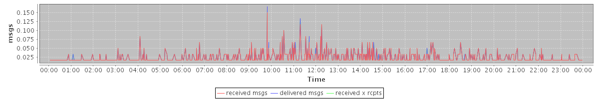 avg(received msgs) = 0.01 avg(delivered msgs) = 0.01 avg(received x rcpts) = 0.01