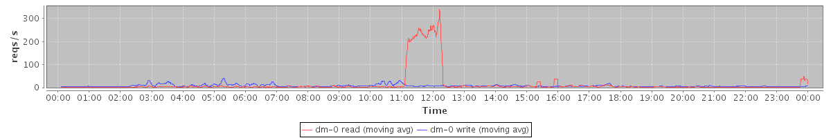 avg(dm-1 read) = 1443.86 avg(dm-1 write) = 7.15