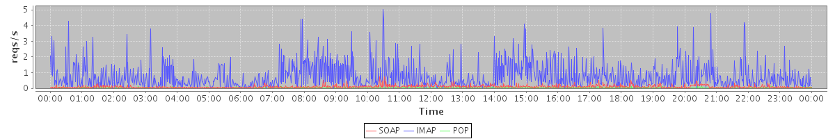 Host zm21.stanford.edu: Mailboxd: Request Rate by Client Protocol