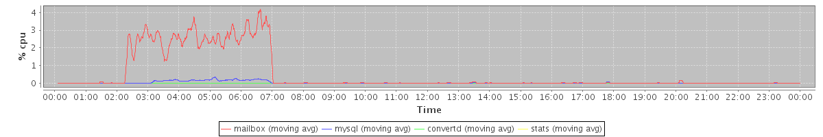 avg(mailbox) = 0.52 avg(mysql) = 0.03 avg(convertd) = 0.00 avg(stats) = 0.00