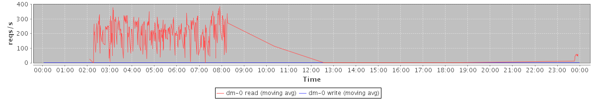 avg(dm-0 read) = 2071.30 avg(dm-0 write) = 0.08
