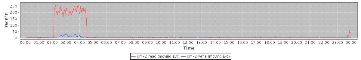avg(dm-2 read) = 347.73 avg(dm-2 write) = 69.11