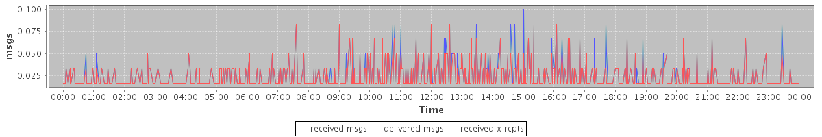 avg(received msgs) = 0.01 avg(delivered msgs) = 0.01 avg(received x rcpts) = 0.01