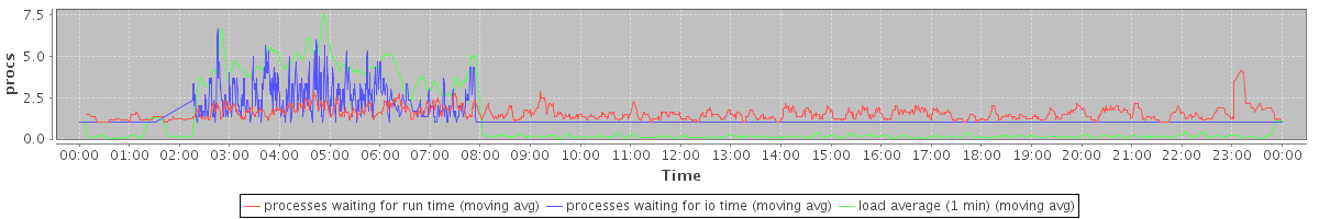 avg(processes waiting for run time) = 0.90 avg(processes waiting for io time) = 0.53 avg(load average (1 min)) = 1.16