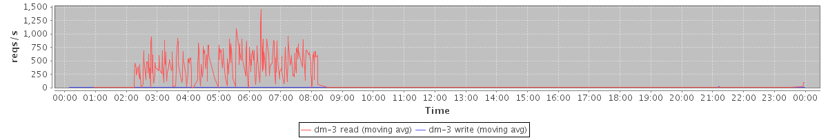 avg(dm-3 read) = 933.69 avg(dm-3 write) = 2.10