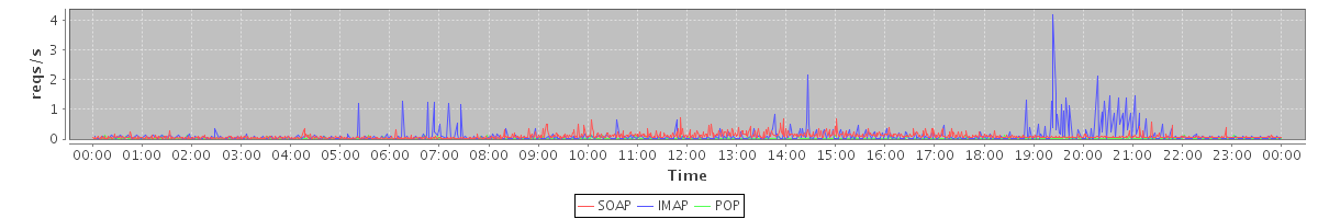 avg(IMAP) = 1.13 avg(IMAP SSL) = 1.65 avg(POP) = 0.00 avg(POP SSL) = 0.00 avg(SOAP sessions) = 3.33