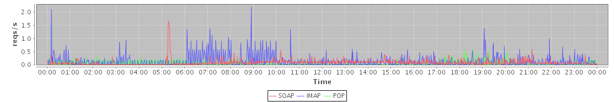 Host zm03.stanford.edu: Mailboxd: Request Rate by Client Protocol