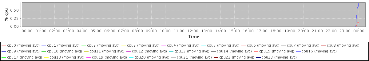 avg(cpu0) = 0.00 avg(cpu1) = 0.01 avg(cpu2) = 0.00 avg(cpu3) = 0.00 avg(cpu4) = 0.00 avg(cpu5) = 0.00 avg(cpu6) = 0.00 avg(cpu7) = 0.00 avg(cpu8) = 0.00 avg(cpu9) = 0.00 avg(cpu10) = 0.00 avg(cpu11) = 0.00 avg(cpu12) = 0.00 avg(cpu13) = 0.00 avg(cpu14) = 0.00 avg(cpu15) = 0.00 avg(cpu16) = 0.00 avg(cpu17) = 0.00 avg(cpu18) = 0.00 avg(cpu19) = 0.00 avg(cpu20) = 0.00 avg(cpu21) = 0.00 avg(cpu22) = 0.00 avg(cpu23) = 0.00
