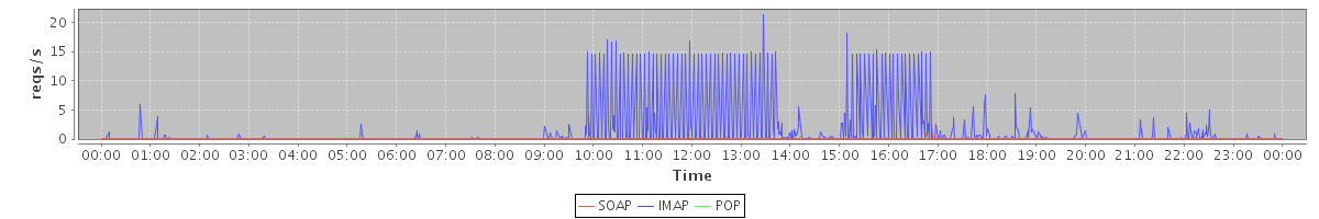 Host zm04.stanford.edu: Mailboxd: Request Rate by Client Protocol