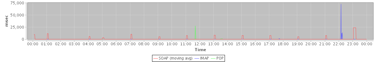Host zm04.stanford.edu: Mailboxd: Response Time by Client Protocol