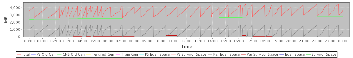 avg(total) = 3498.40 avg(PS Old Gen) = 0.00 avg(CMS Old Gen) = 2595.82 avg(Tenured Gen) = 0.00 avg(Train Gen) = 0.00 avg(PS Eden Space) = 0.00 avg(PS Survivor Space) = 0.00 avg(Par Eden Space) = 786.91 avg(Par Survivor Space) = 115.67 avg(Eden Space) = 0.00 avg(Survivor Space) = 0.00