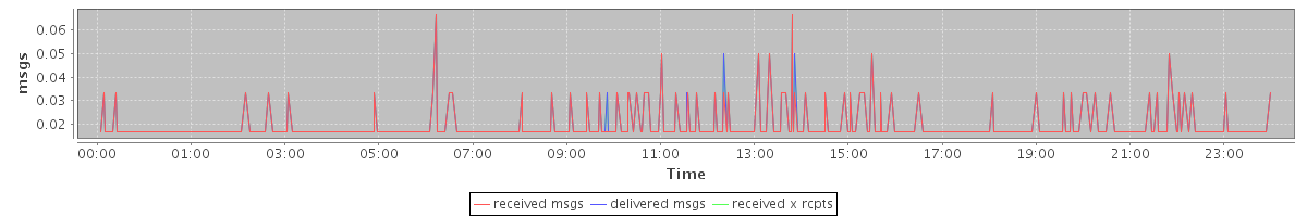 avg(received msgs) = 0.01 avg(delivered msgs) = 0.01 avg(received x rcpts) = 0.01